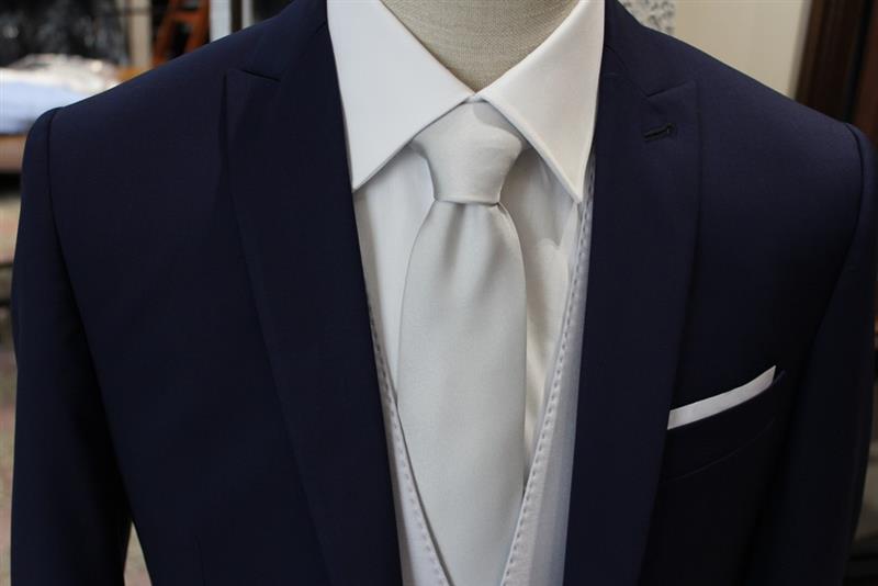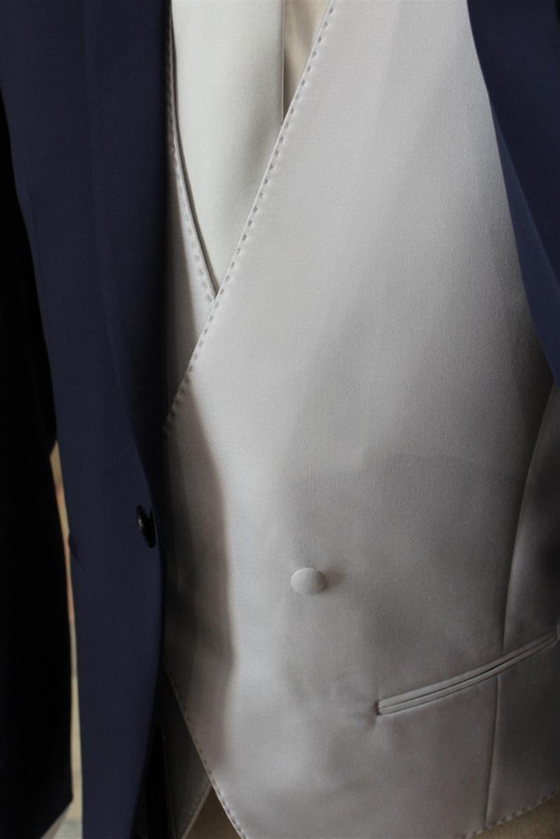 Gilet doppiopetto ad 1 bottone grigio chiaro, cravatta 100% seta grigio ghiaccio.