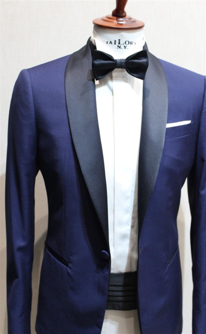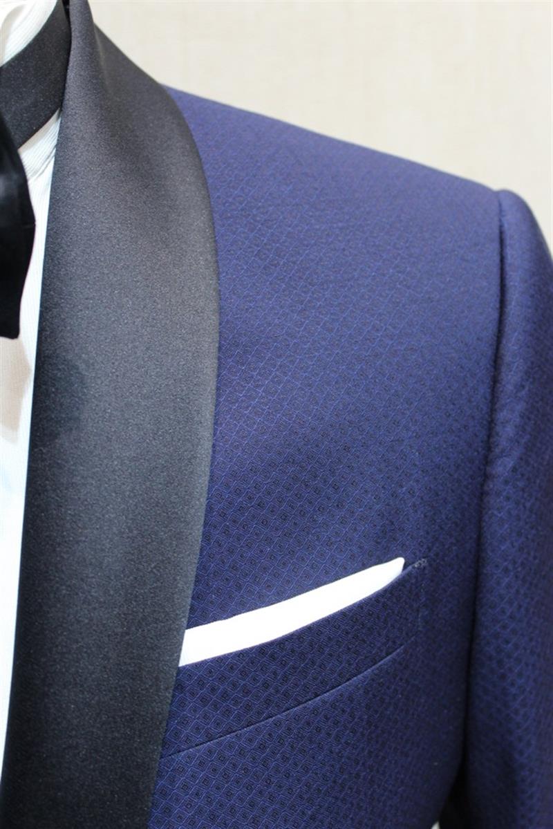 SMOKING BLUETTE TEX MICROFANTASIA MERINOS EXTRAFINE, 1 BOTTONE, REVER SCIALLATO RASO NERO