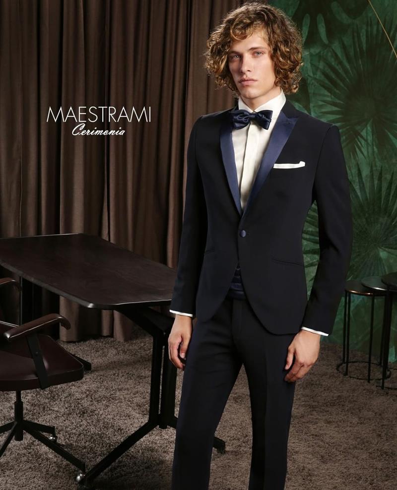 Smoking petto a lancia in raso nero e gilet doppiopetto con bordatura in raso nero