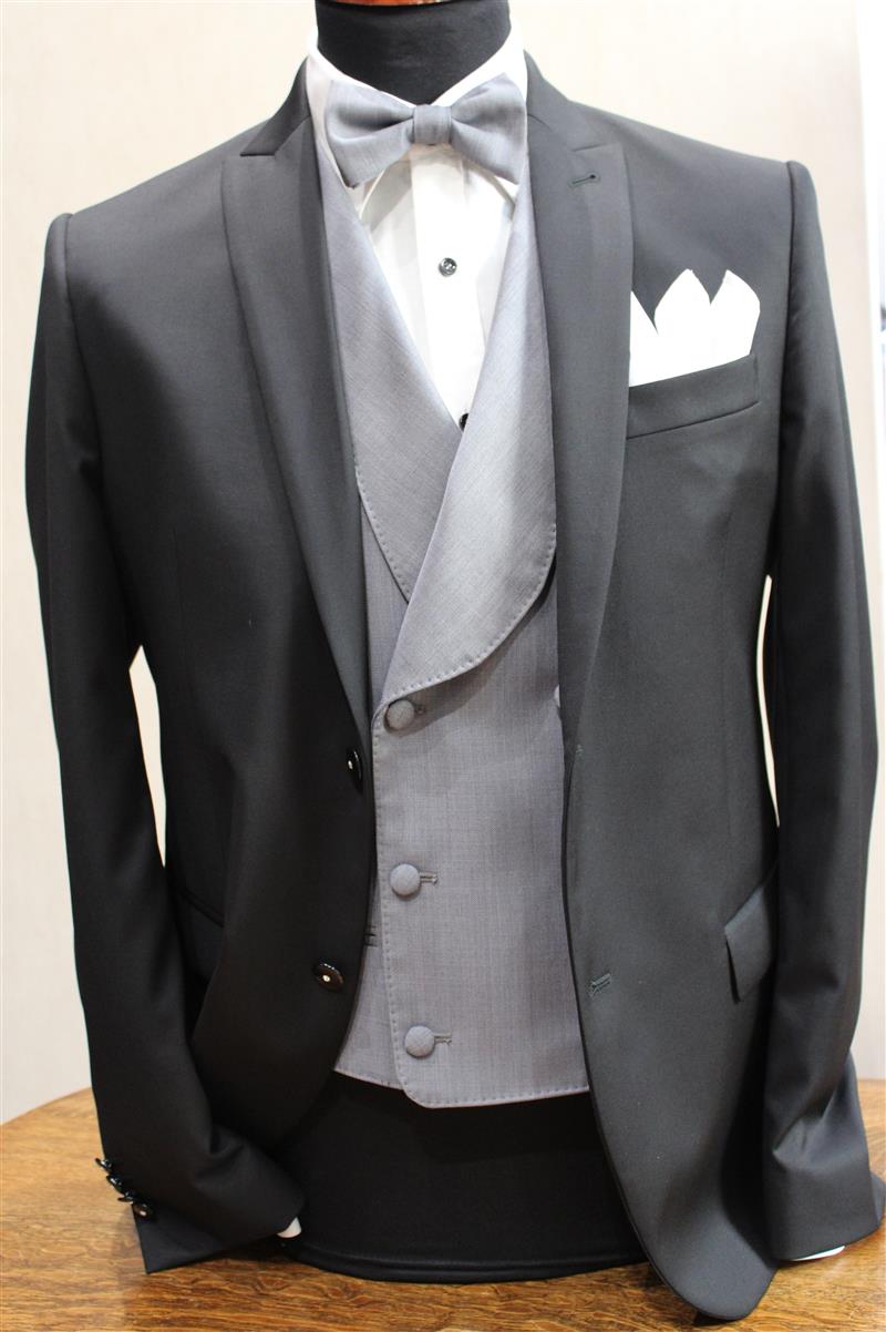 LeggiAbito 2 bottoni,petto a lancia, 1 spacco, tex in pura lana Vitale Barberis Canonico, gilet grigio chiaro doppiopetto, in pura lana tex Drago con papillon abbinato