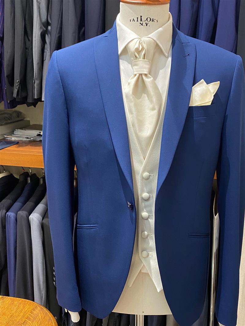 LeggiSplendido Abito Blu Napoli,1 bottone, Petto a lancia, 1 spacco centrale,